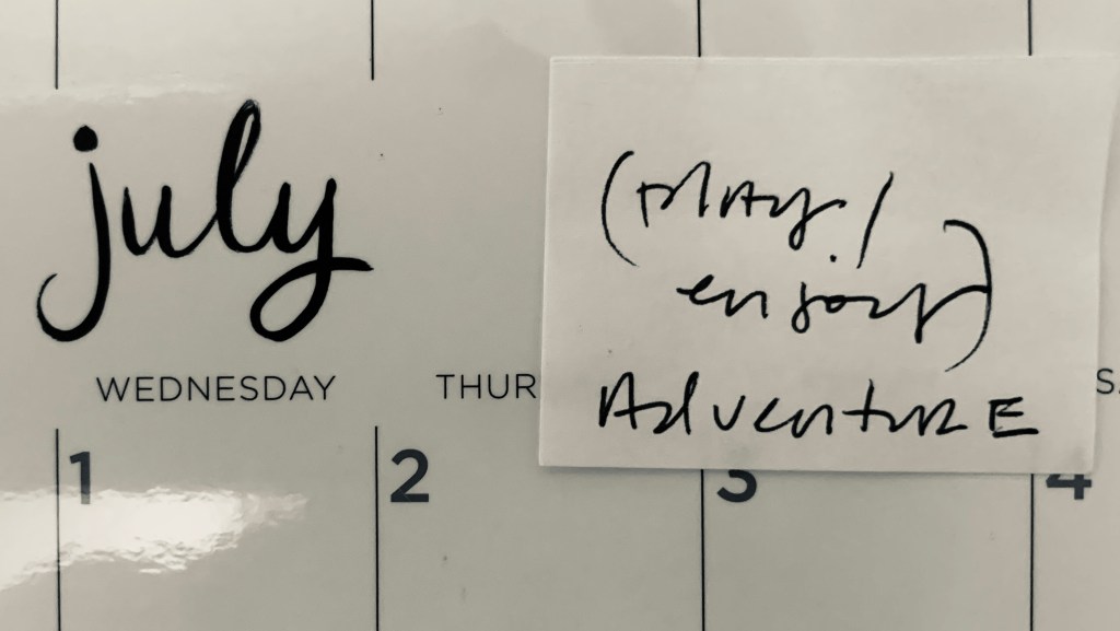 The theme I chose for July (back in December) was Adventure. I had added the words ‘play’ and ‘enjoy’ in parenthesis above a capitalized Adventure on my ‘post it’ for the month.