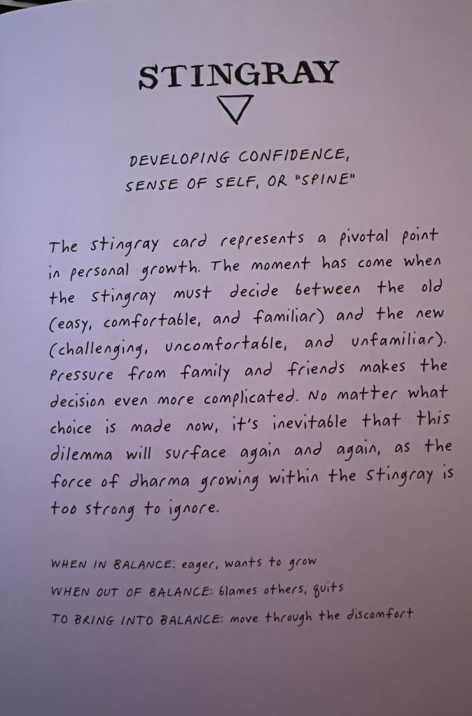 The drawings of the animal cards are cool. That’s the main thing. If the kids were interested I would read to them about the elements and the powers. Truthfully, in the time period I am referencing I only had the deck available for them to look at if it interested them, and kept it on the table.
