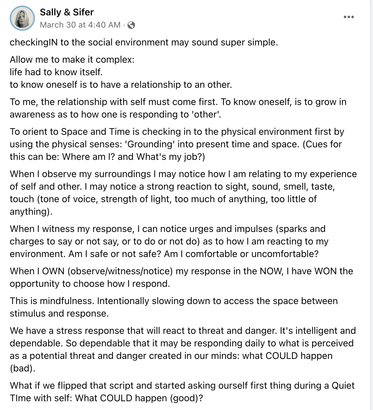 When one has a desire to connect to their authentic self and orient to the physical world of external conditions from the inner space of knowing and possibility, the experience of existence feels hopeful.