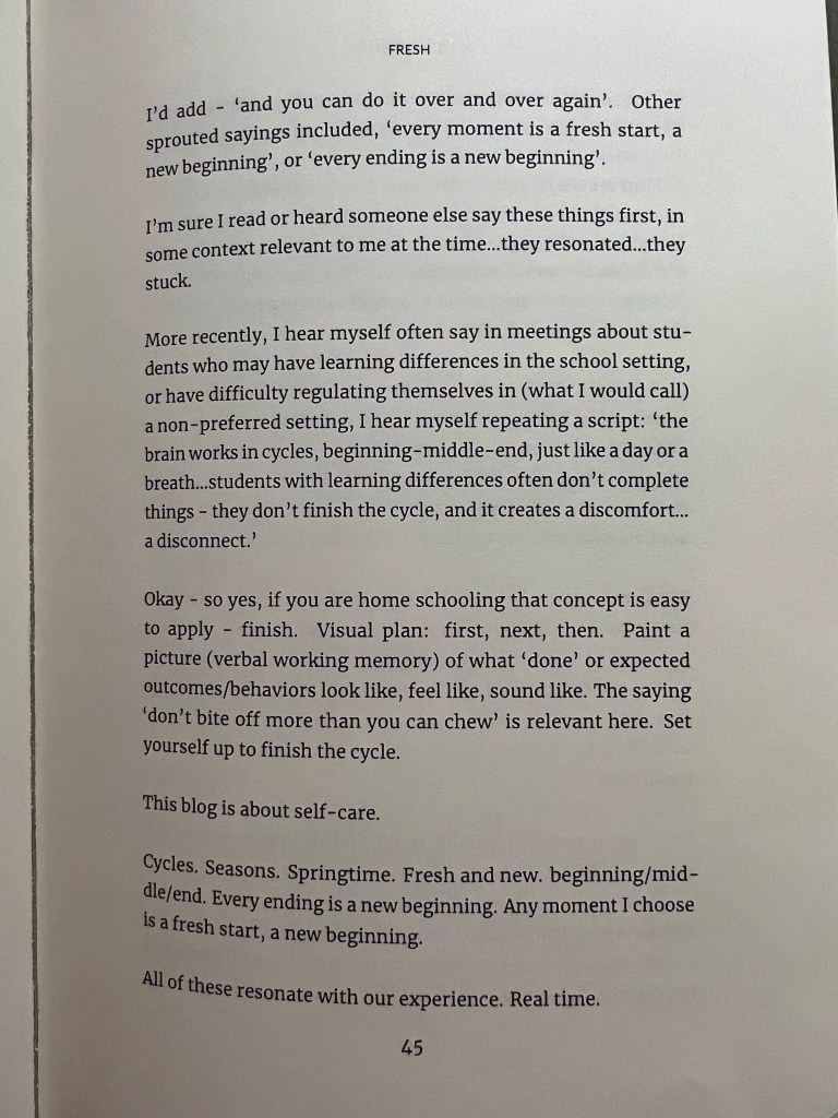 Wellbeing and authentic expression is a contradicting aspect to market/capitalize. It feels to me (a person who has only been in the school environment) that *business thinking* strips away the intrinsic value and worth of what I am ‘selling’ or ‘branding’. It feels disingenuous to ‘sell’ wellbeing. Wellbeing exists.