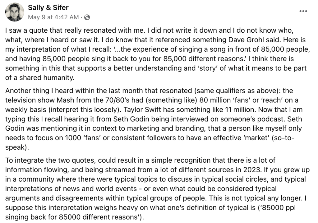 And finally, a May 16, 2020 post from pp 64-67 of Something More. Connecting to the pulse of a Shared Humanity.