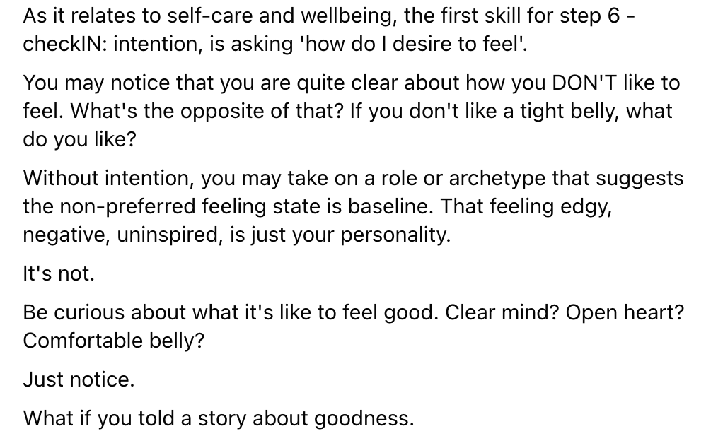 If I followed my plan I would have spent the past week sharing thoughts and ideas on step six of the checkIN: intention.