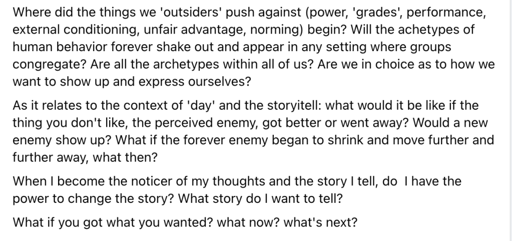 As I am teaching my content again, I recognize interesting contradictions. Contradiction is a way of describing a world that exists within oppositional forces. Better said: a world existence based on oppositional force is set up to contradict itself.