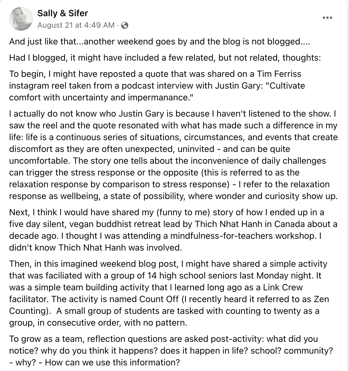 @sallysifer FB posts since last blog….