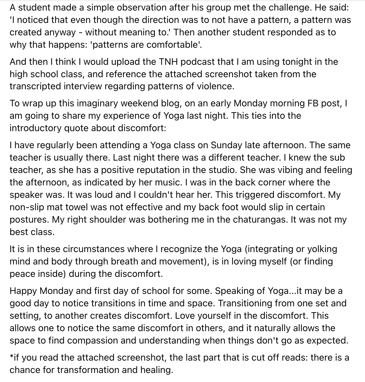 My lens and the focus of my content is to apply helpful skills, tools, and strategies toward self, first. With a mindset and belief that from this inner space of balance, we can move toward ‘the next thing’ in a way that leads one toward sustainable growth outcomes that nourish and grow the good stuff available, and allow one to enjoy one’s experience most of the time. I would not take on an argument as to how to use the skills toward external conditions such as the war on terror.