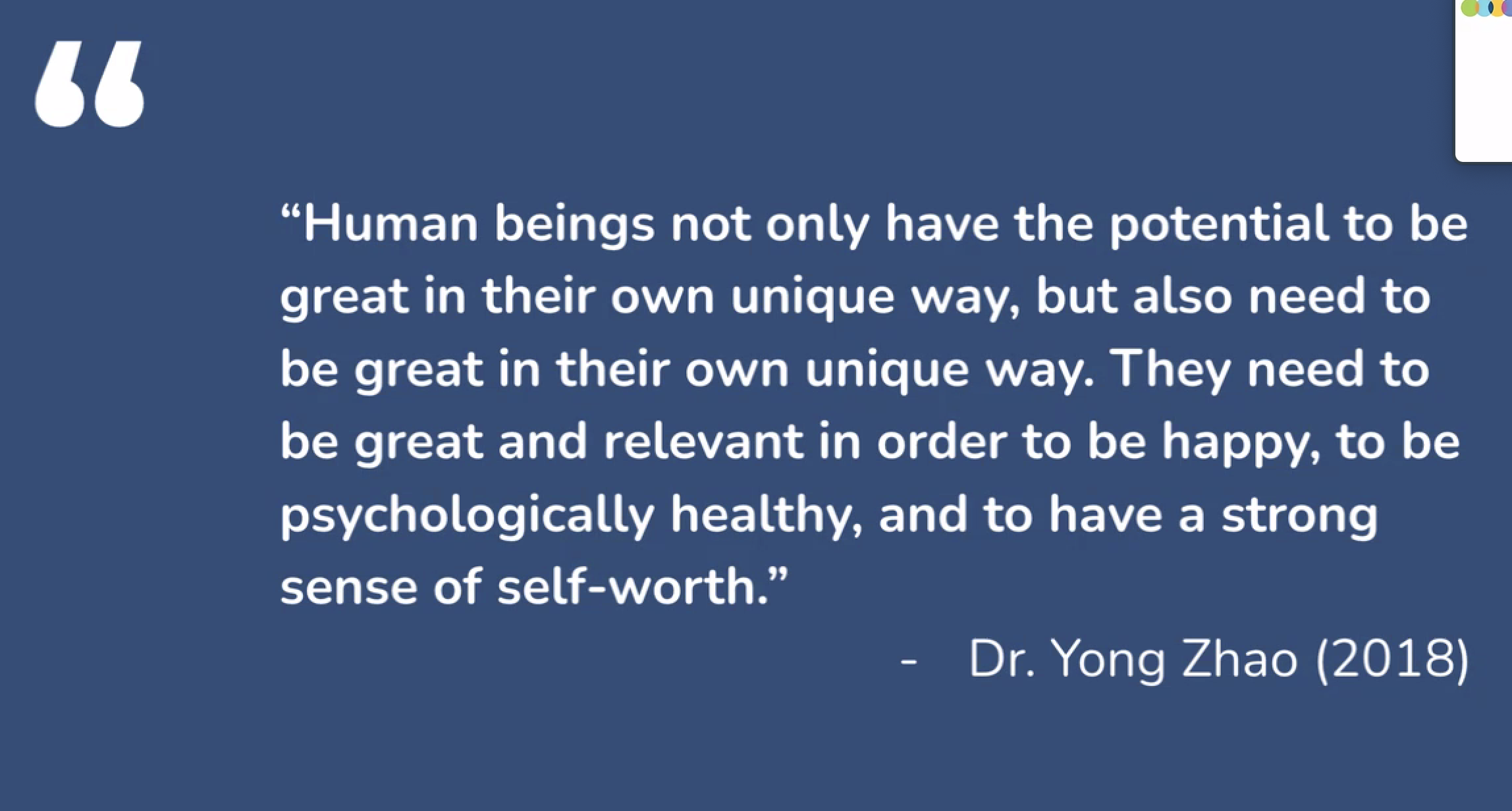 - The quote is specific to the GT community. Question: is it not relevant to all persons? Is ‘great’ another loaded word? What does it mean to you?