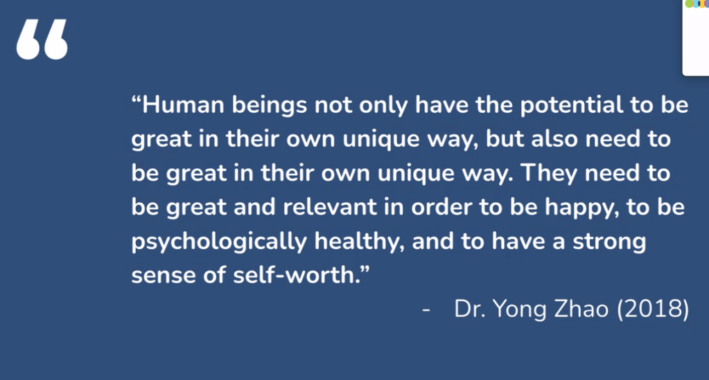 I liked the quote and found it on my desktop as a screenshot. I assume I took a screenshot from a webinar related to young people who qualify in a school setting as….neurodiverse. In this case, the term is twice exceptional. An individual has a skill, talent, ability that is demonstrated to be two standard deviations apart from the normed group for the age range (GT qualification), as well as demonstrates a social/emotional/communication/health/learning difference that is also two standard deviations apart from the normed group in the other direction (qualifies for a learning plan at school to level the playing field and might require specialized instruction).