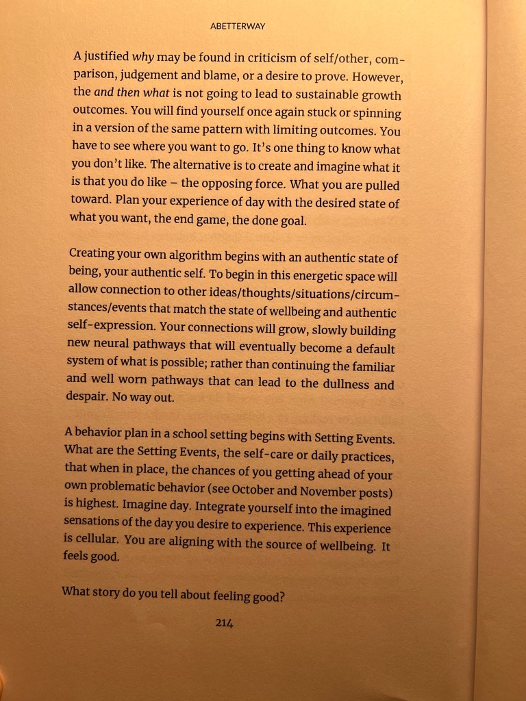 Next, I will share the 12.19.2021 post plan. taken from the book abetterway. using inner resources to create your own algorithm. If you are wondering who the author is of abetterway, it is me. abetterway is a compilation of 2021 blogposts that followed a monthly sequence connecting executive function (ie. inner resources) to self care skills, tools, strategies – or in most cases: suggesting ways to think about the skillsets, or inner resources, that might contribute to increased enjoyment in day.