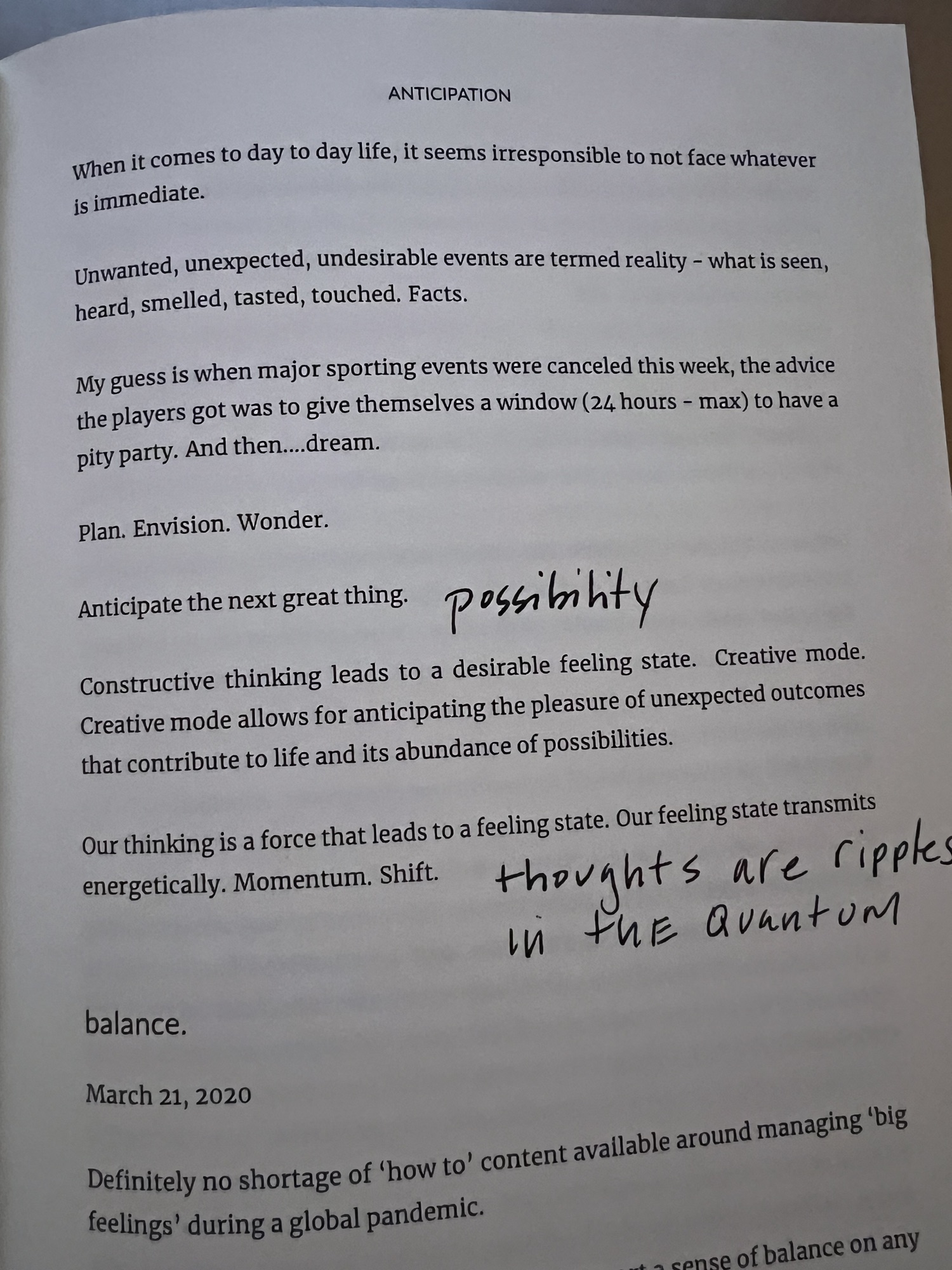 - In the excerpt, it references March 2020: ‘When major sporting events were canceled this week…’. Did you have a response in your body when you read it? Notice the response. Mind.Heart.Belly.Muscles.Skin. Name the response. Allow the response. Release the response. It is four years later. What is happening? Is it better? Consider intensity, duration, time.