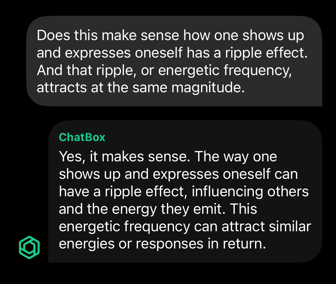 Similarly, how one shows up and expresses oneself has a ripple effect. And that ripple, or energetic frequency, attracts at the same magnitude.