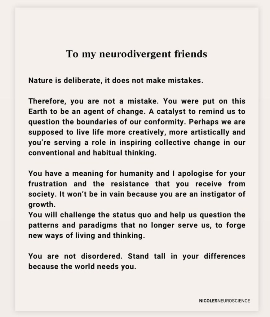 In the school world, working with students over the years whom are considered to have social, academic, and/or emotional differences (see image below that includes the perfect language to describe my wholehearted belief), ‘transition’ is a word often used. A ‘transition’ can be somewhat interchanged with the verb ‘to shift’. Humans can access their higher order thinking (executive function skillsets) to manage transitions in day-to-day living. Shifts can occur in thinking, feeling, behavior, and outcomes. It’s not ‘if’ shifts happen, it’s ‘when’. (I would link my dad as a reference for that general piece of wisdom – at the time, it had to do with saving money for things like new tires…).