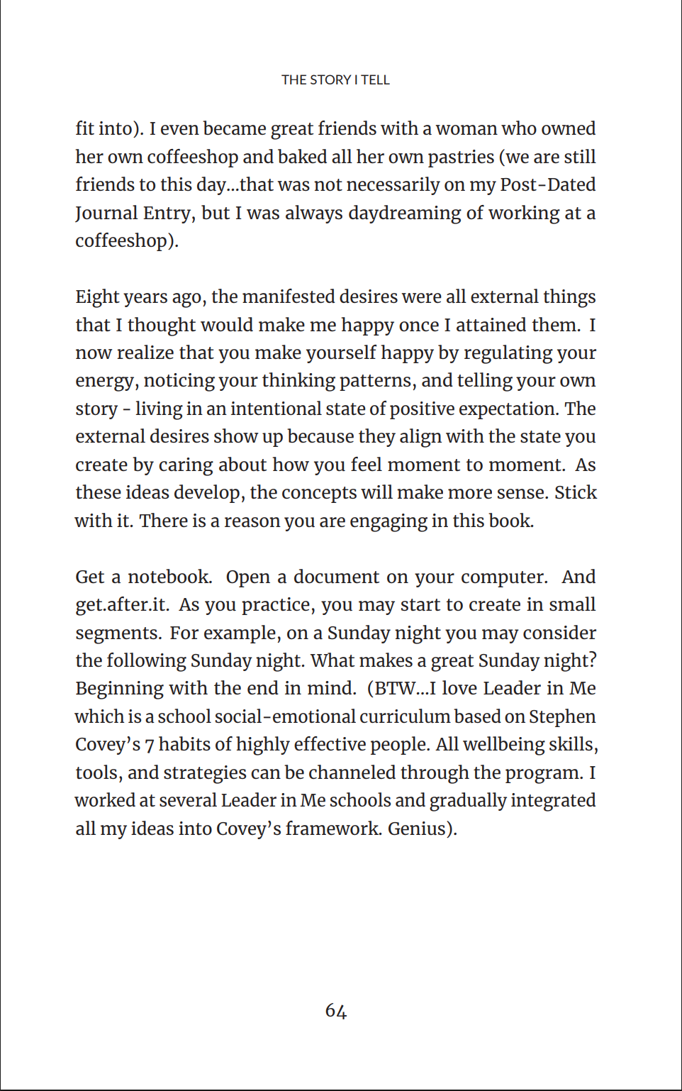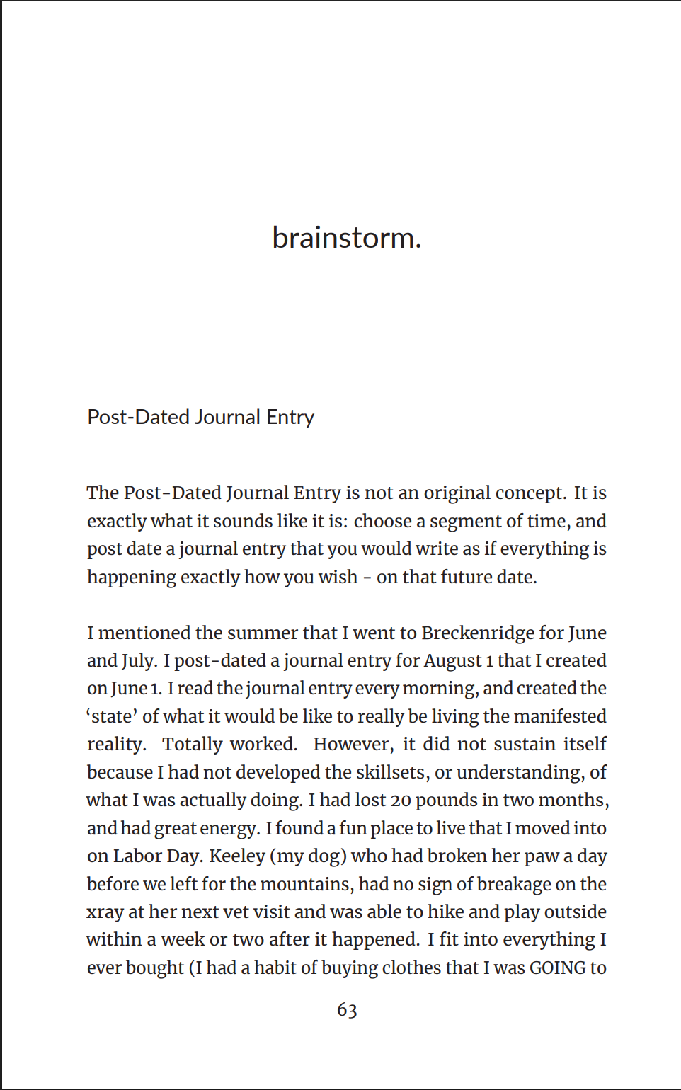 In the brainstorm chapter of part III (p 63), The Story I Tell. How to make the Age of Disruption work for you, I write about the summer I first did a post dated journal entry.